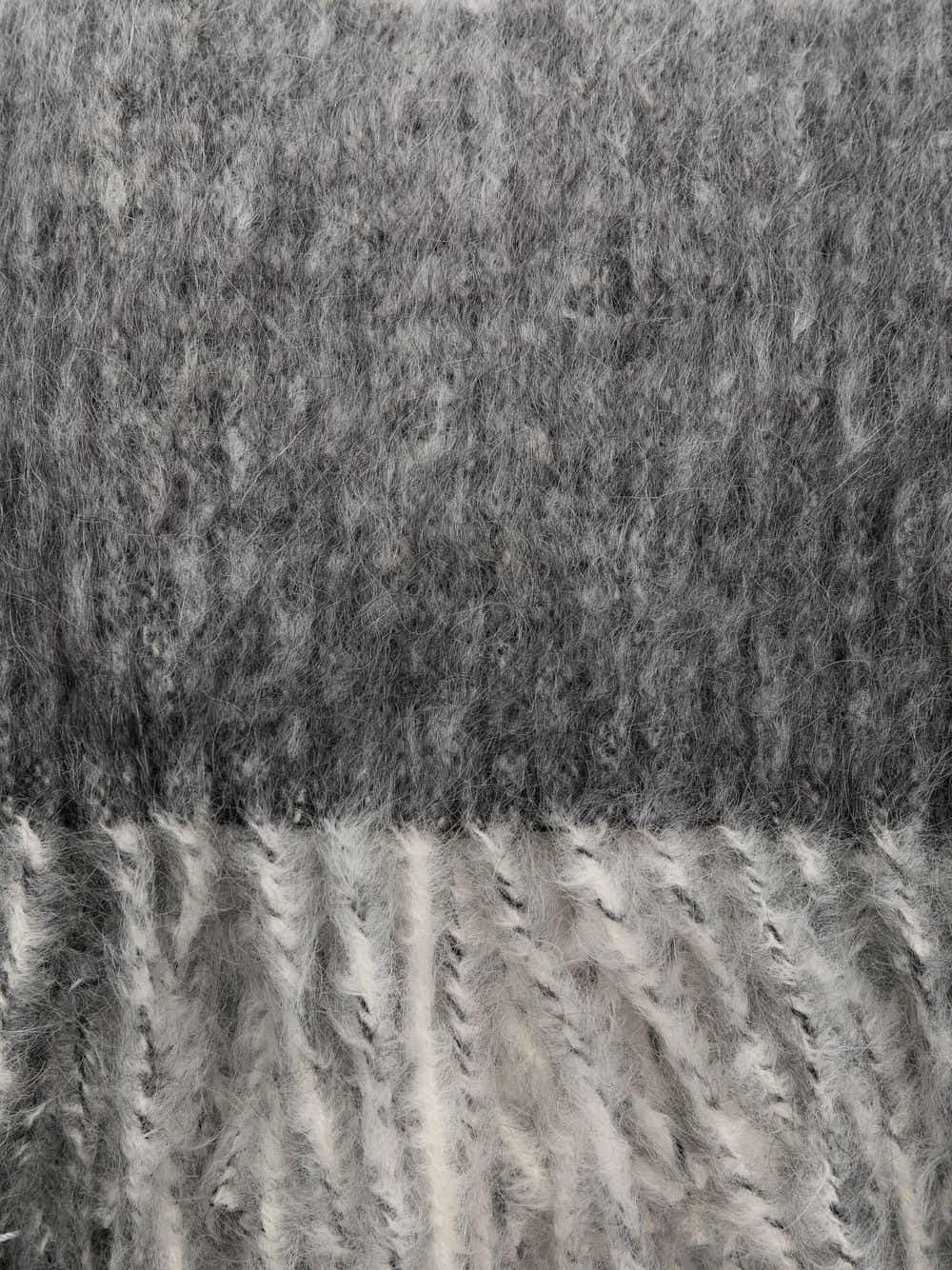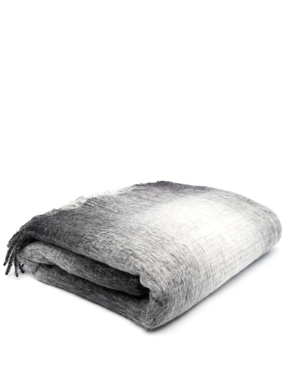 Couverture en laine d’alpaga grise à effet tie and dye, patch logo latéral et ourlet à franges.