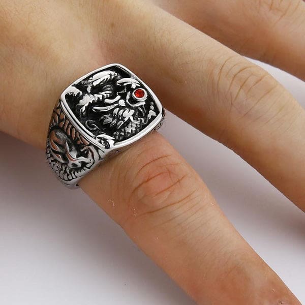 Bague Dragon Chevalière Homme (Acier)