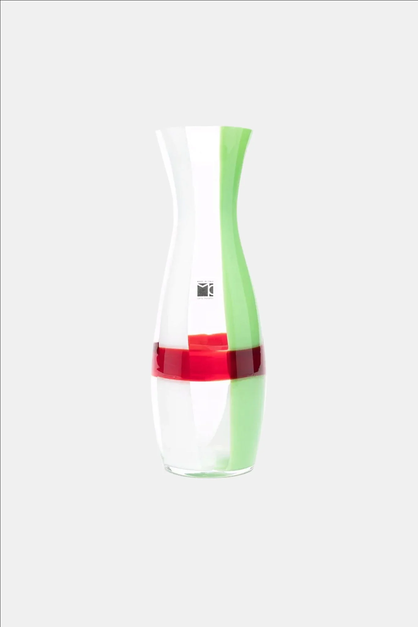 Carafe en cristal « Decanter Italia » soufflée à la main par les maîtres verriers de Murano. Existe en différents motifs travaillés à chaud, suivant un procédé artisanal exprimant un savoir-faire unique. Chaque pièce est signée et datée.