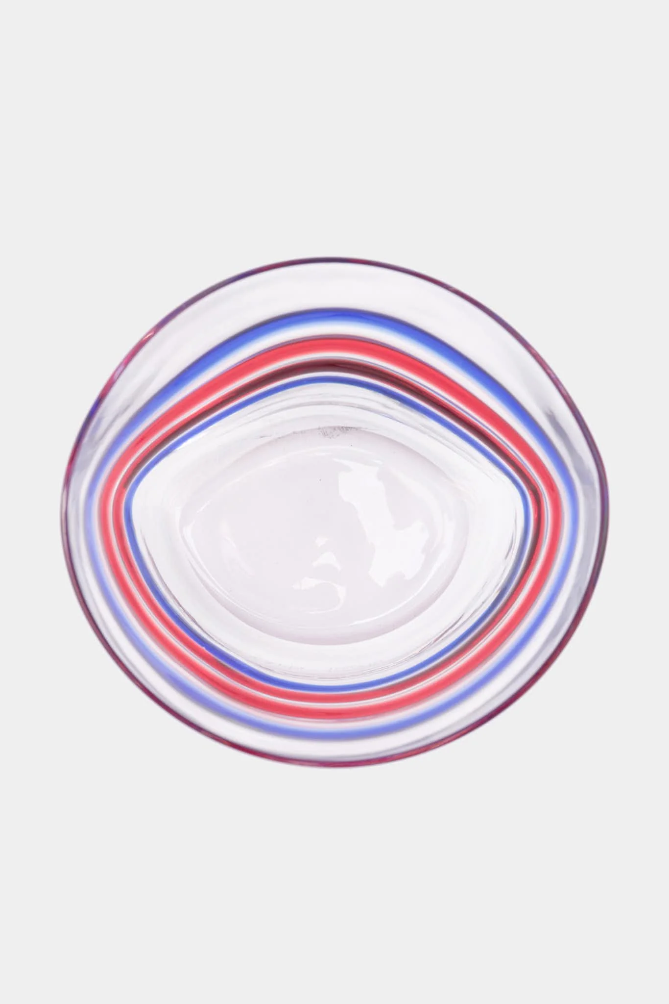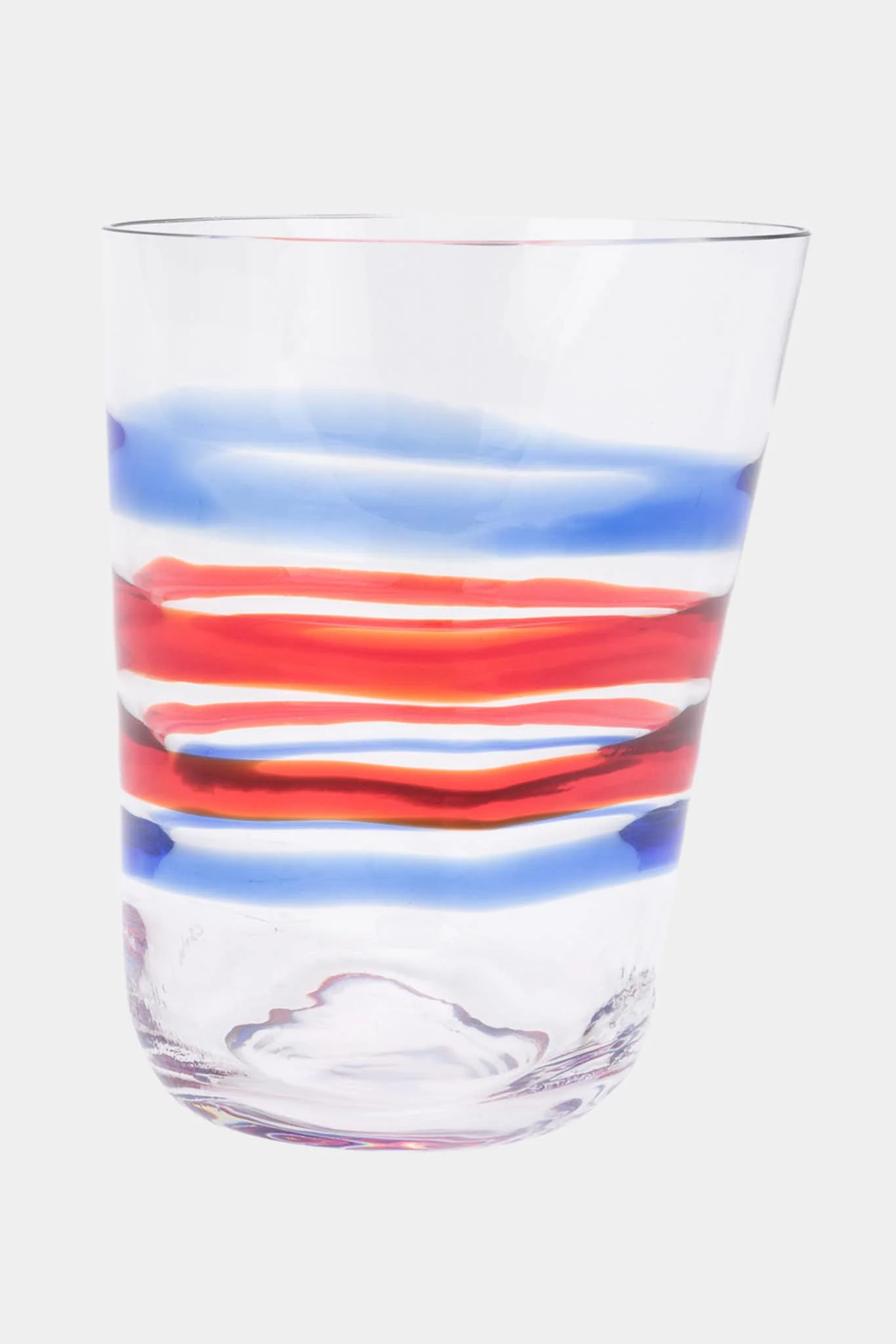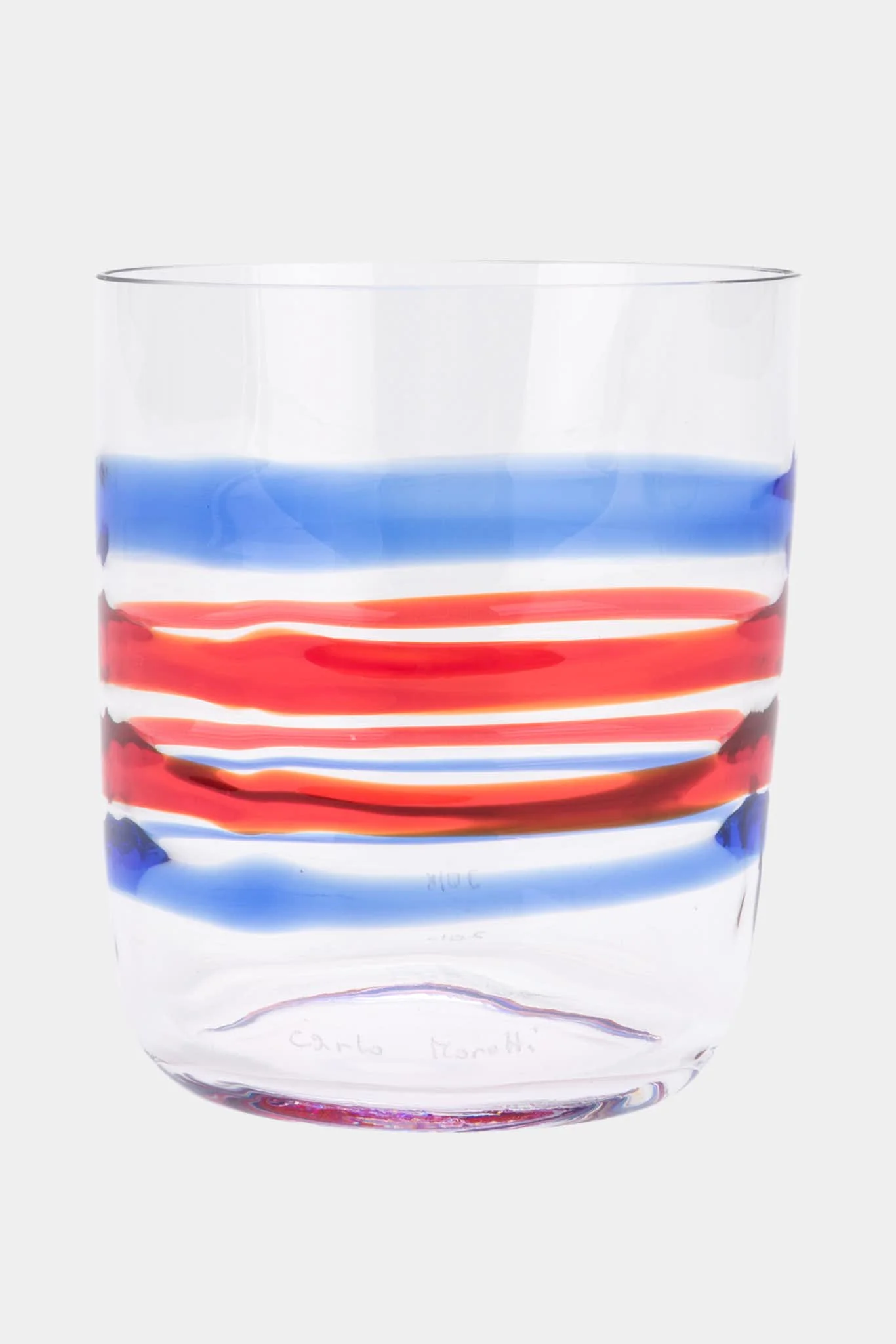 Verre transparent, bleu et rouge en cristal de Murano par Carlo Moretti, à rayures. Disponible en plusieurs coloris.