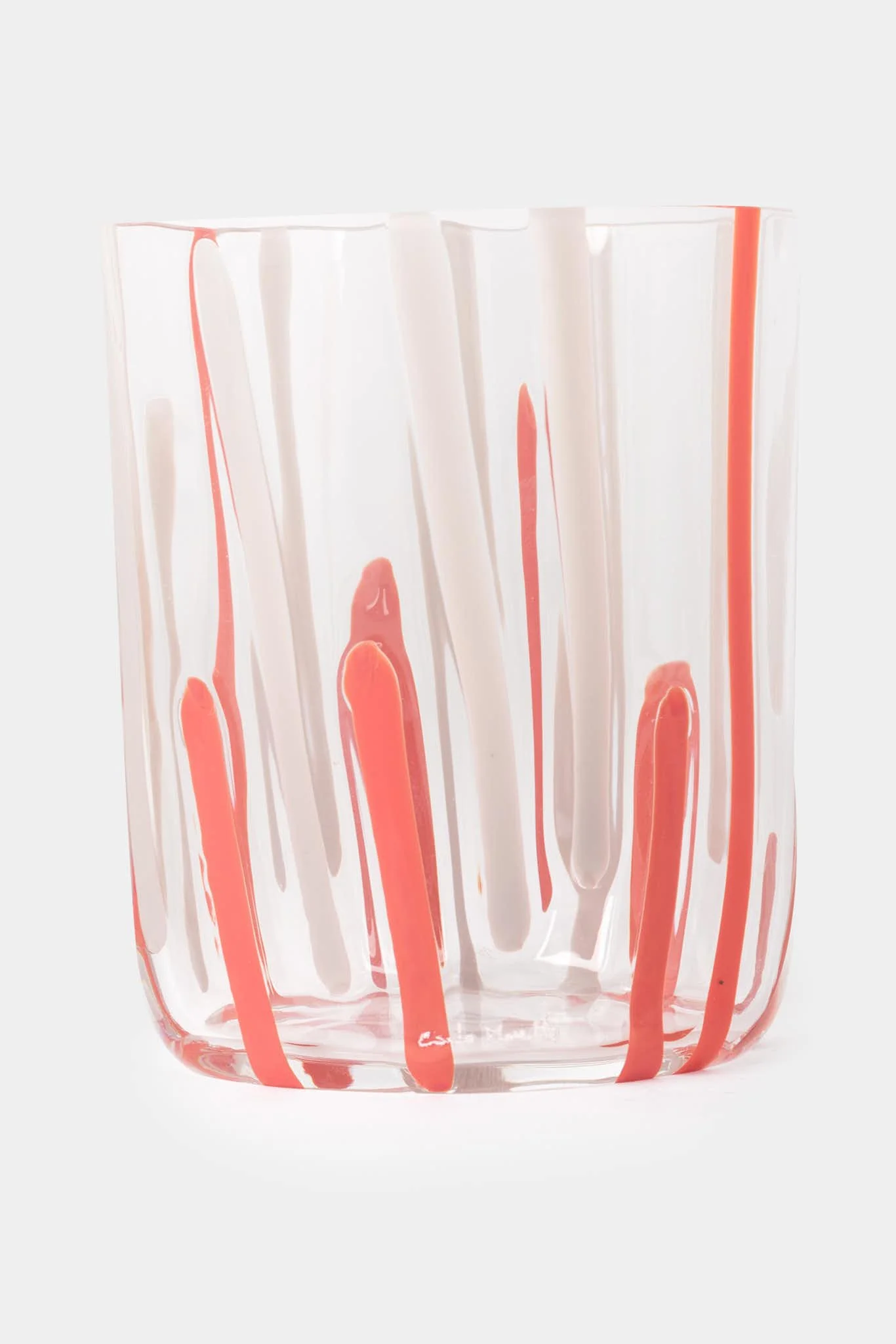 Verre transparent, rose et blanc en cristal de Murano par Carlo Moretti, à rayures. Disponible en plusieurs coloris.