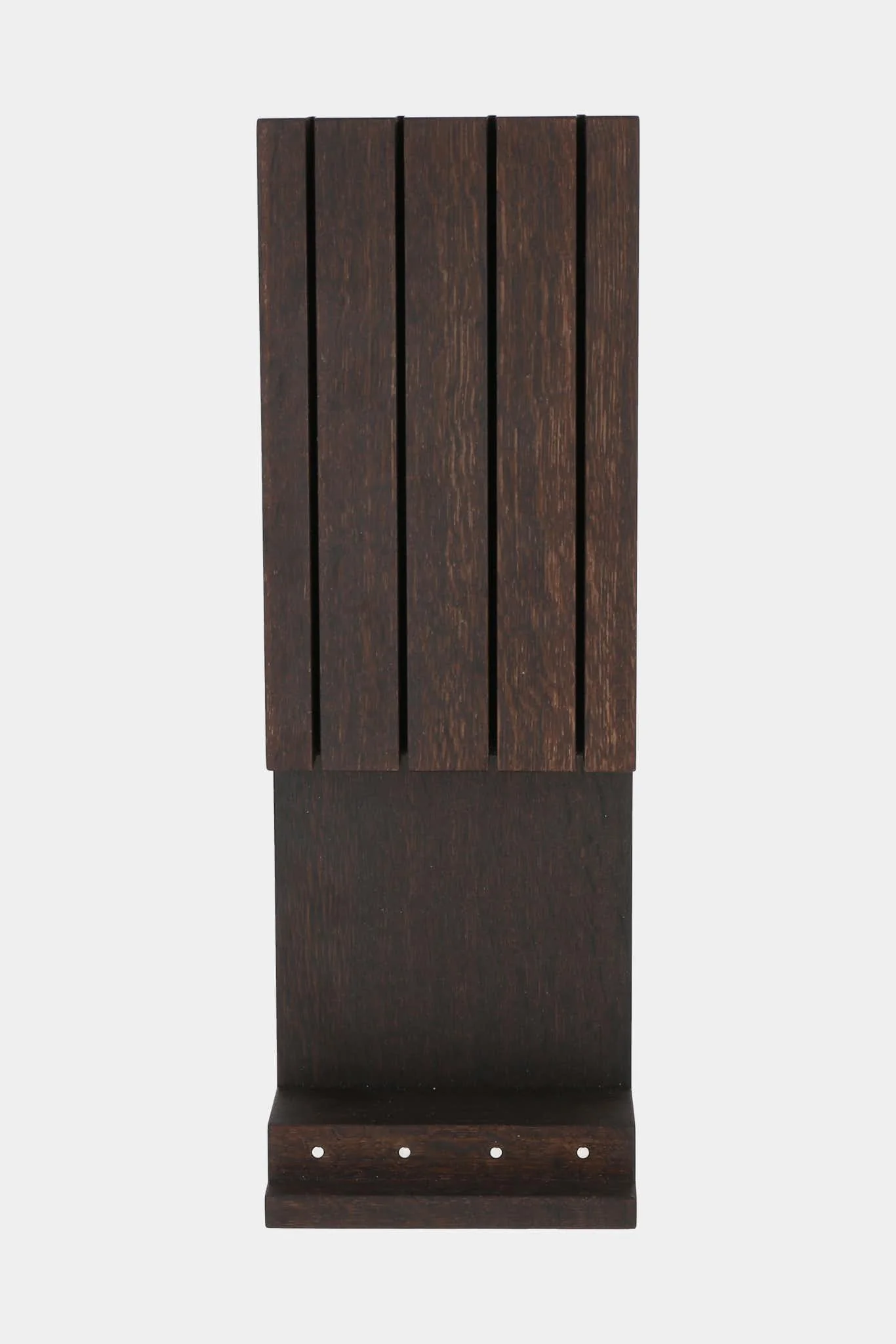 Porte-couteaux « Synchros » en bois de chêne fumé pouvant contenir 4 couteaux. Cet article peut être utilisé à la fois debout et couché. Les couteaux sont maintenus par un aimant sur le manche afin qu’ils restent en position debout. Couteaux vendus séparément.