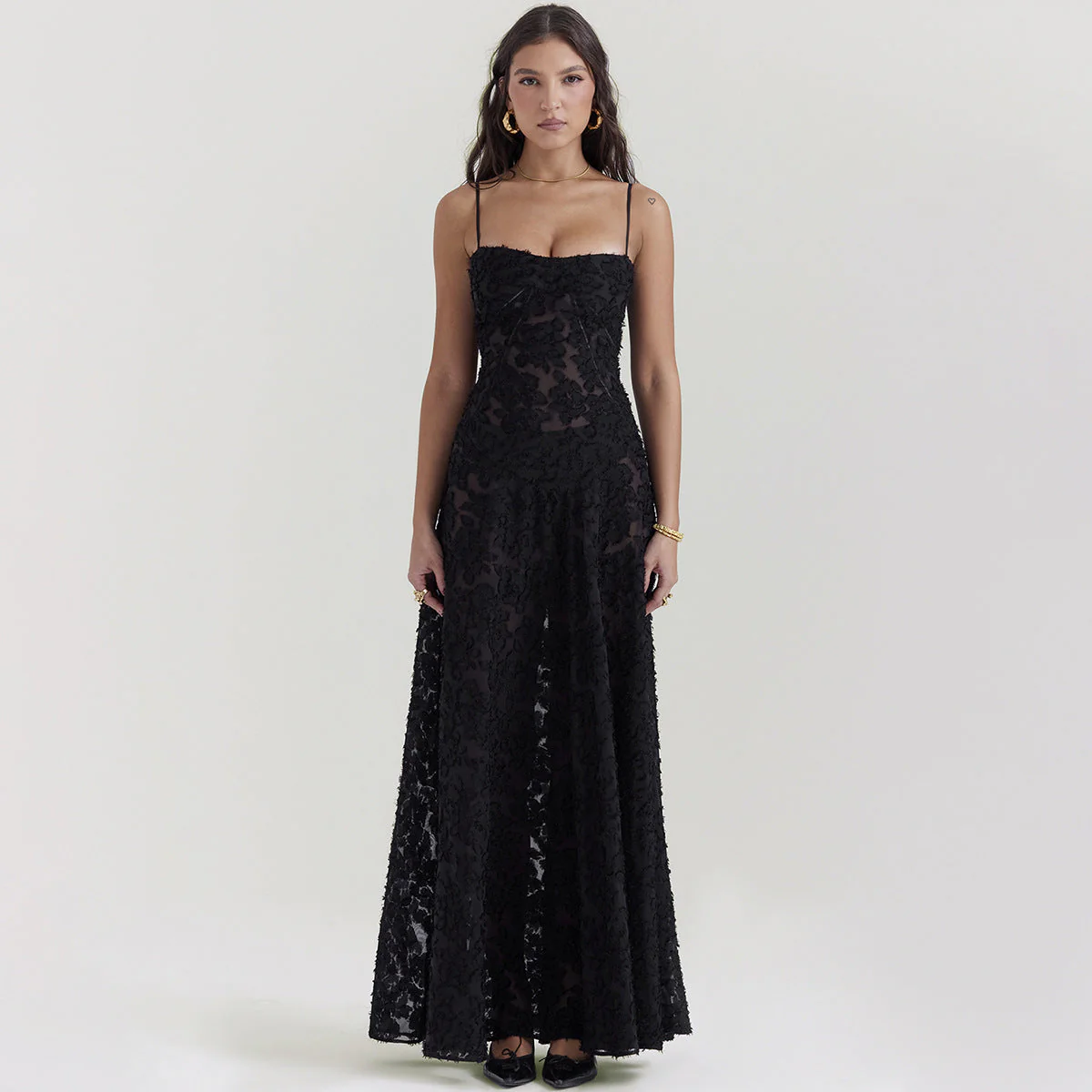 - Bretelles fines en rouleau : Ajoutent une touche délicate et féminine.