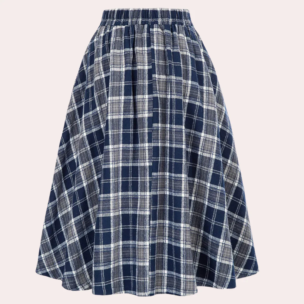 Améliorez votre collection d’automne et d’hiver avec la jupe écossaise à taille haute de Luminita. Dotée d’un motif écossais élégant, cette jupe midi de ligne A est un complément polyvalent à vos tenues.