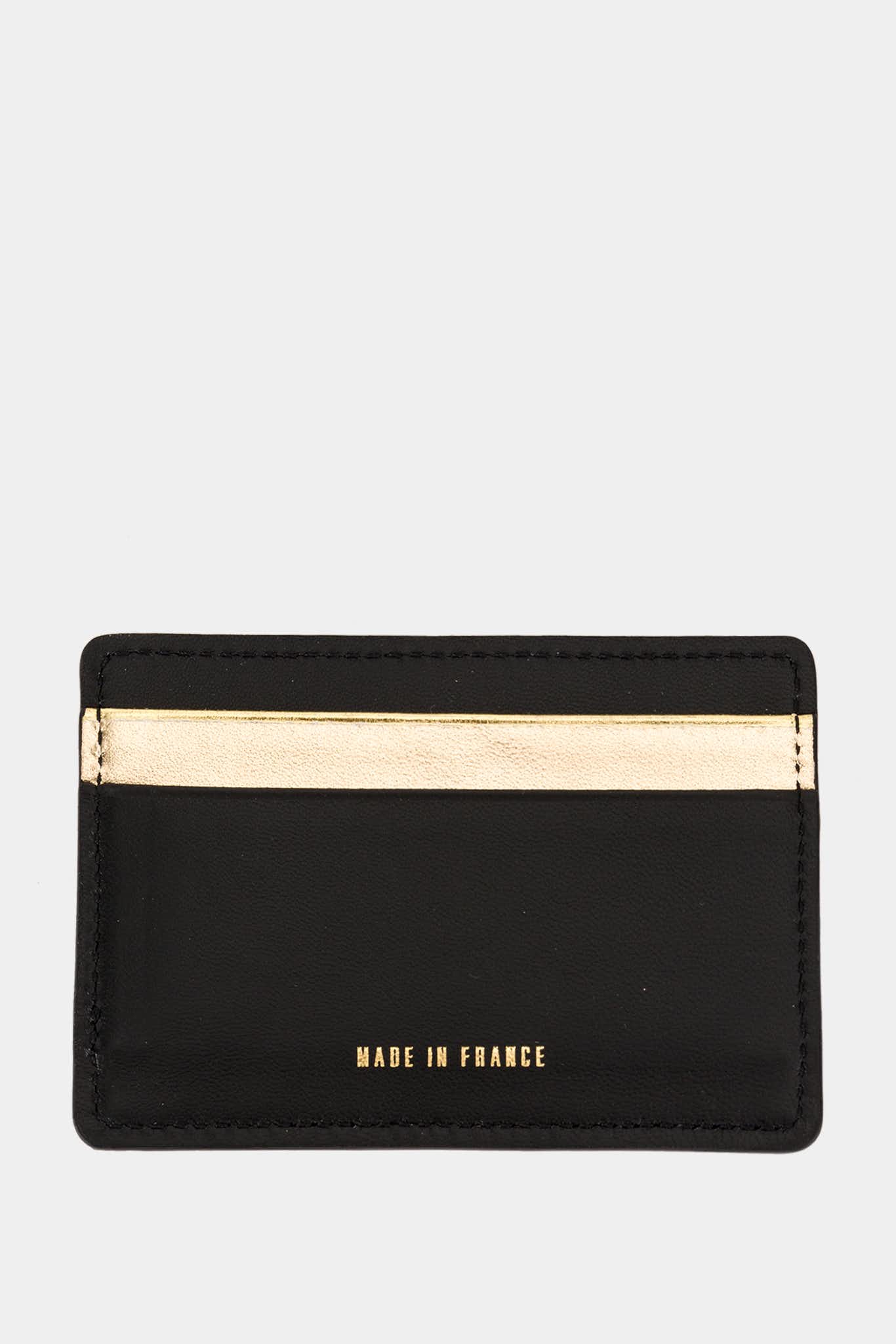 Porte-cartes doté de quatre compartiments en cuir noir à logo embossé à finition dorée.