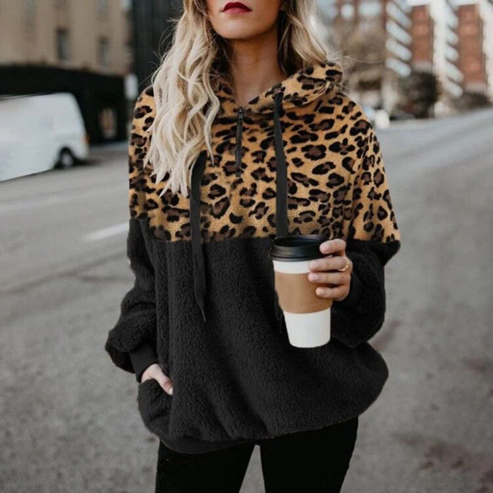 Pull à capuche imprimé léopard, ample, automne-hiver